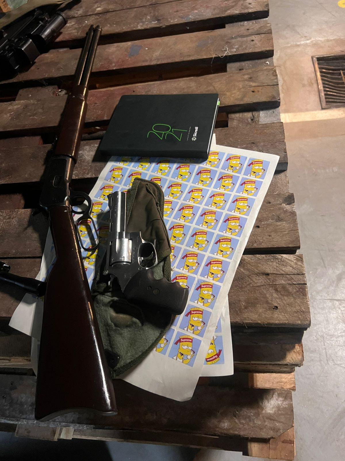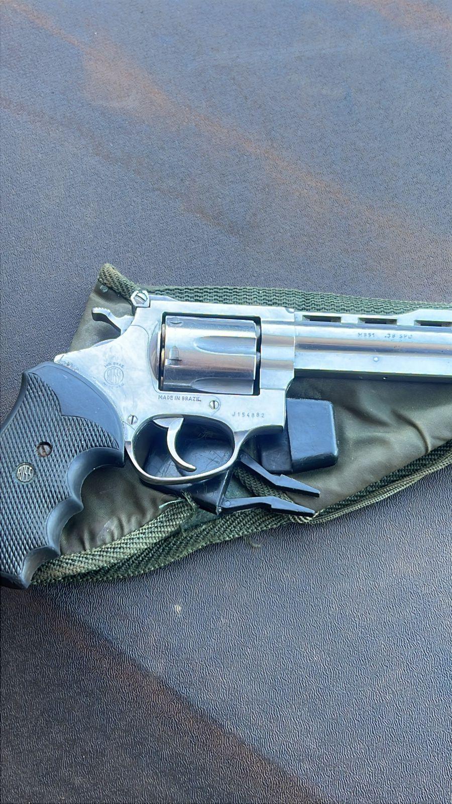 2 armas de fogo (revólver calibre .38 e espingarda calibre .44)