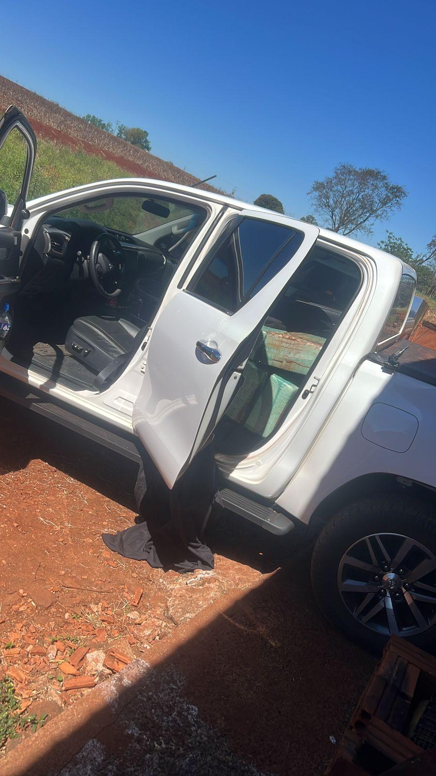 Na Linha Gavião, interior do município, os policiais identificaram movimentação atípica em uma chácara, onde diversos indivíduos carregavam volumes em uma Hilux branca e em um Fiat Mobi prata. Com a aproximação das equipes, alguns suspeitos fugiram para a mata e outros tentaram escapar em veículos.