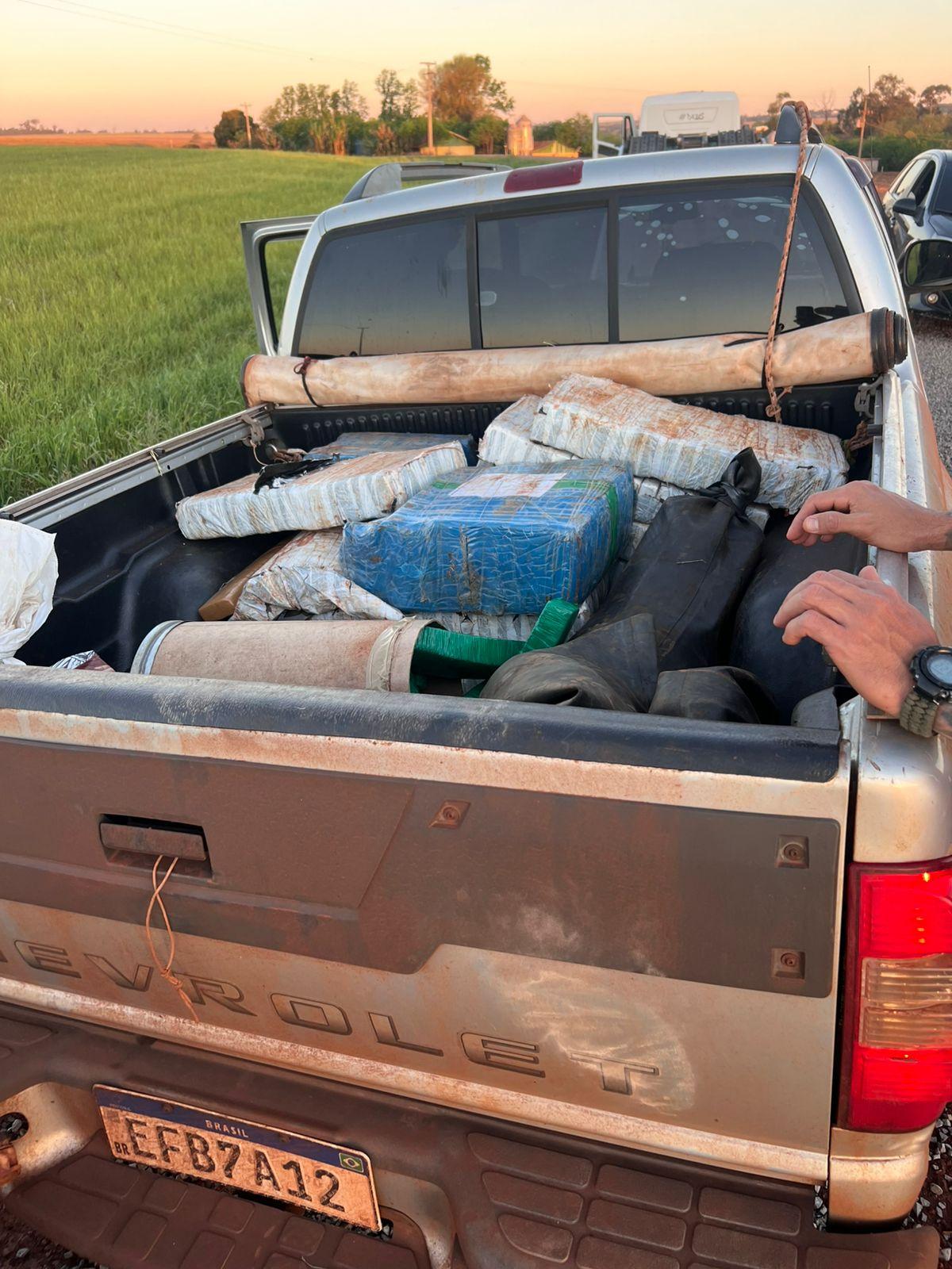 Durante o cumprimento da Operação Protetor, por volta das 13h30, equipes do Batalhão de Polícia de Fronteira (BPFRON), do Pelotão de Operações com Cães, do NEPOM/PF de Guaíra e da Patrulha Rural do 19º BPM monitoraram veículos suspeitos que saíram de Pato Bragado em direção a Nova Santa Rosa.