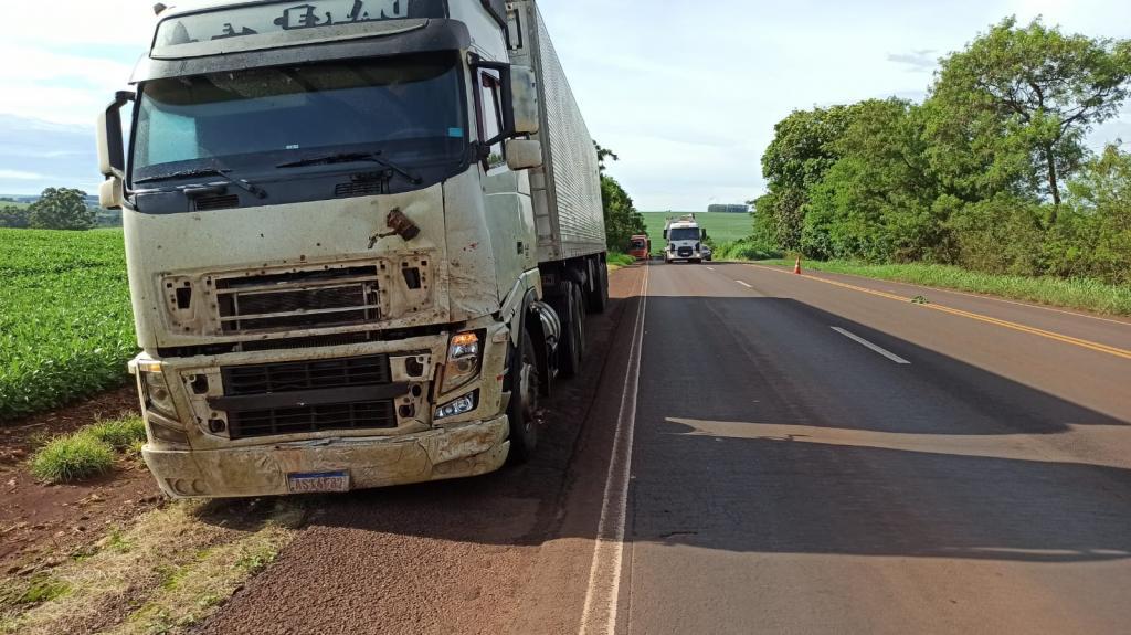 Segundo informações obtidas junto ao motorista da carreta carregada com milho ele e outras três carretas seguiam sentido a Toledo e no sentido contrário seguia o Gol e o Fiat Toro, para não bater de frente com o Gol que realizava uma ultrapassagem em lugar proibido, o condutor do caminhão desviou para o lado direito momento que atingiu a lateral do caminhão carregado de frangos.