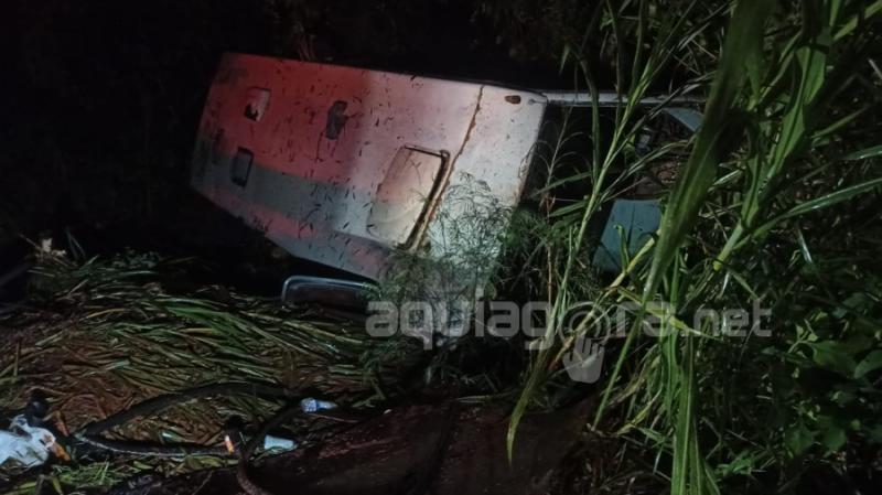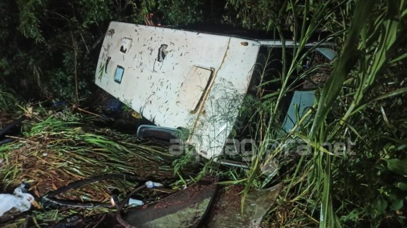 Desgovernado ele atravessou a via, descendo um barranco de cerca de três metros, onde acabou tombando.
