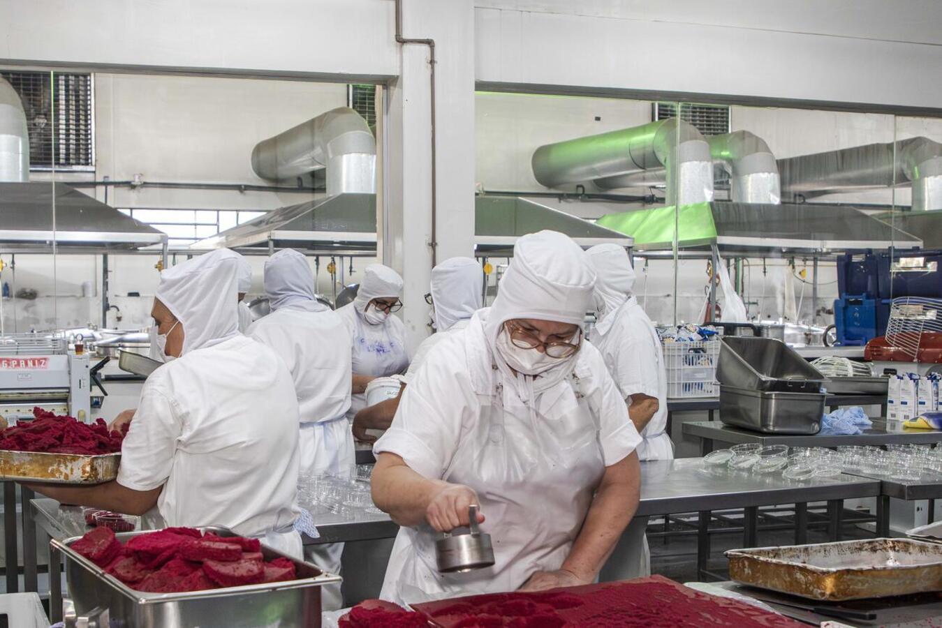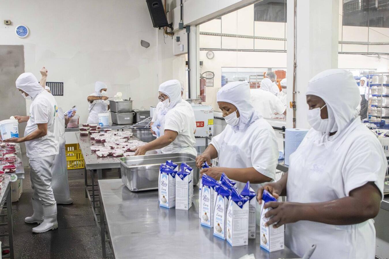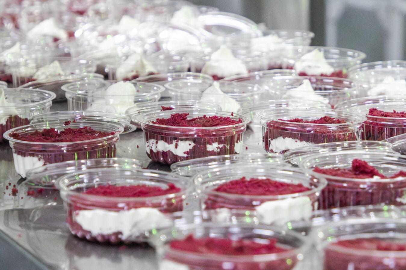 Com 1.300kg de mistura para bolo sabor frutas vermelhas, 7500 ovos, 500kg de leite condensado, 1.000 litros de chantilly e 200 kg de leite em pó, serão produzidos 20 mil potes de bolo com cerca de 200g cada.