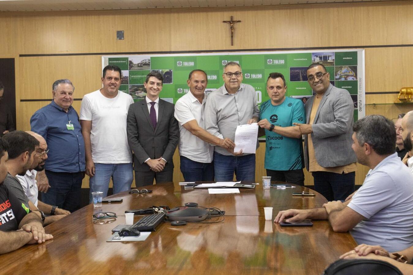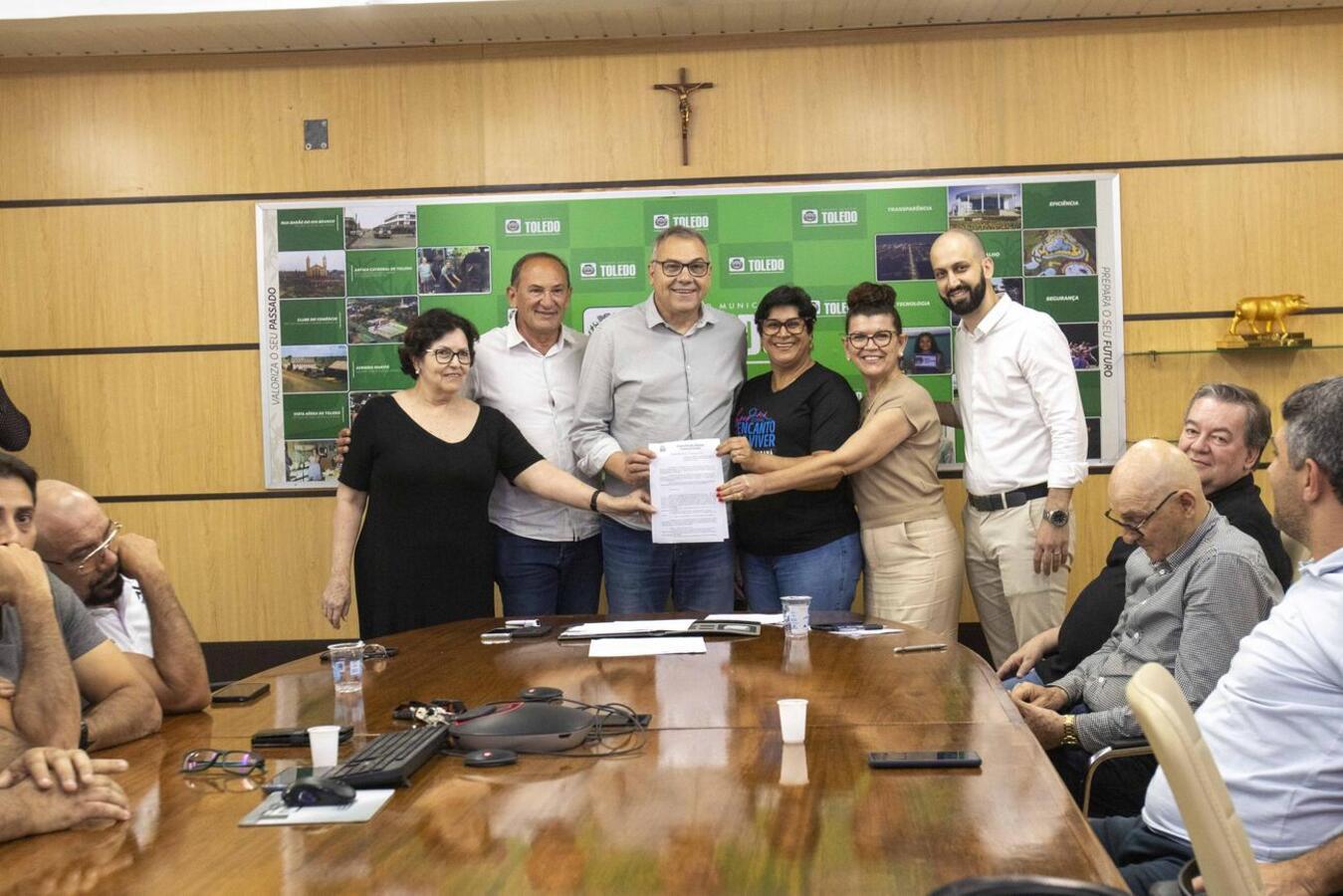 Foram sancionadas três novas leis municipais que declaram de utilidade pública entidades de Toledo, além da assinatura de um decreto de cessão de uso de imóvel. O ato foi realizado no Gabinete do Prefeito, nesta quarta-feira (17), com a presença do prefeito Mario Costenaro, do vice-prefeito Lucio De Marchi, vereadores autores das leis, secretários da gestão municipal e representantes das entidades beneficiadas.